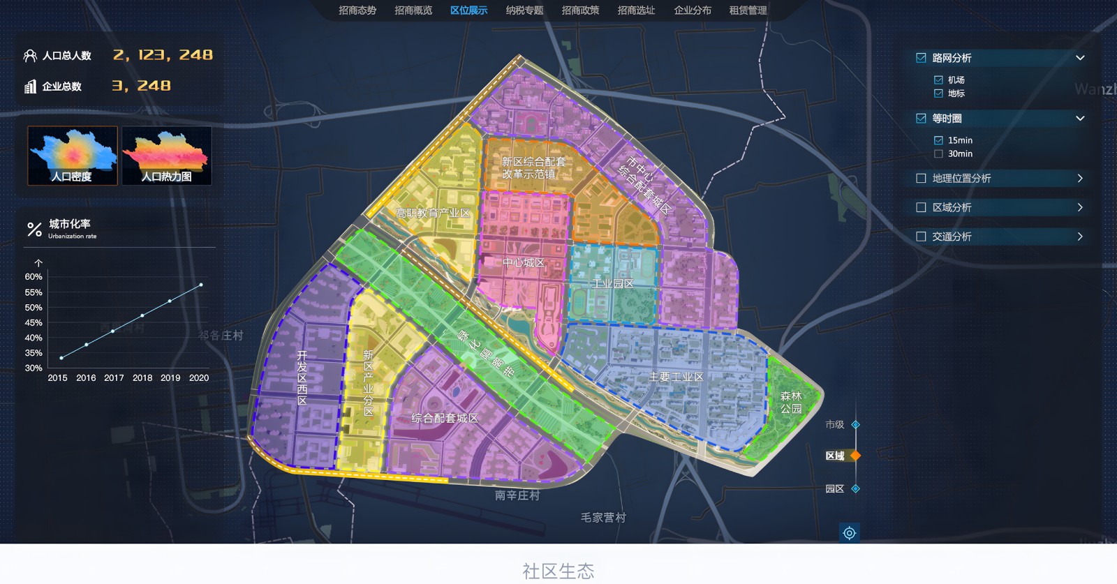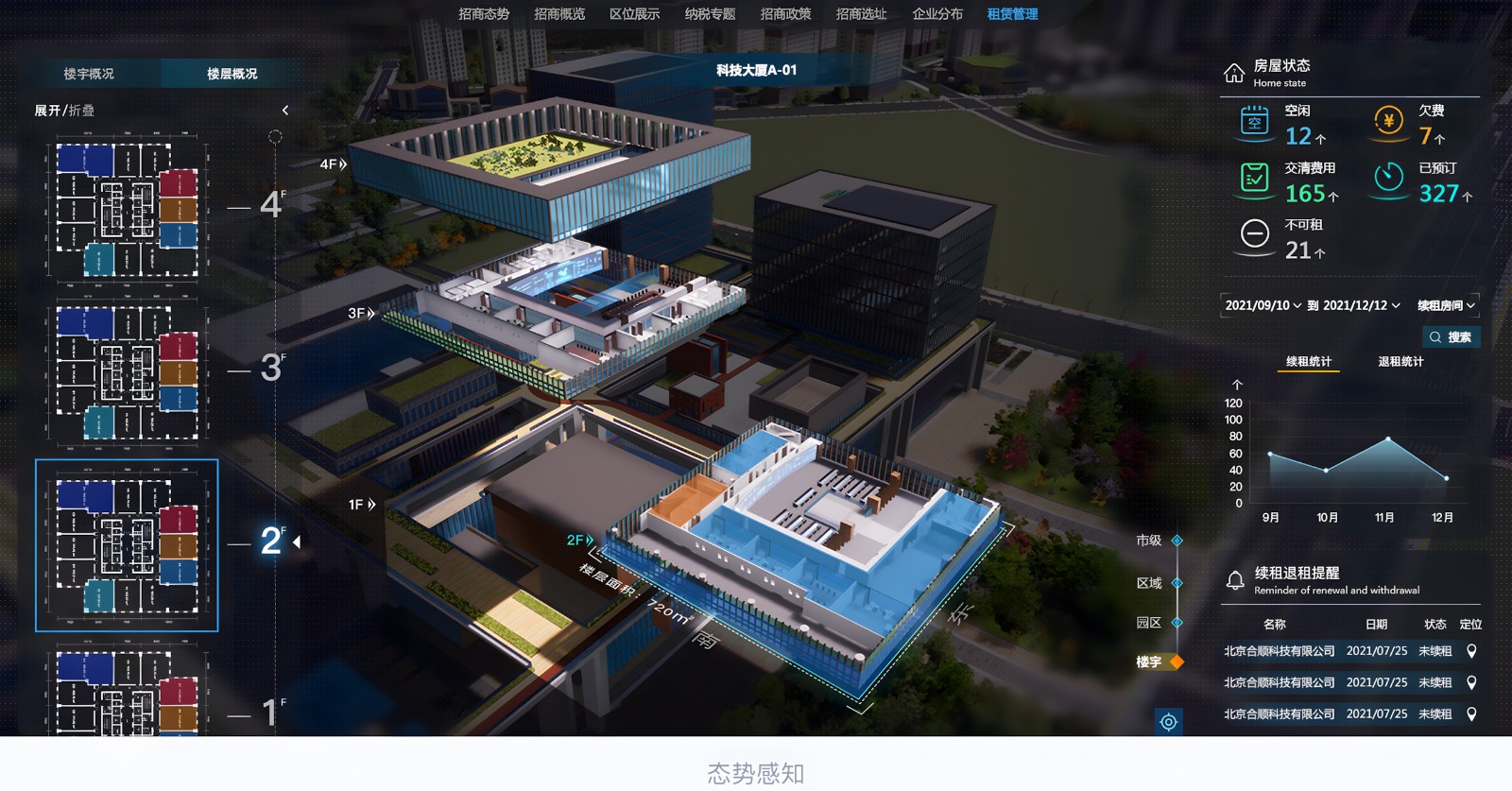 重点以打造招商展示版块为首要目标,建成了一个设施智能化、管理精细化、招商便捷化、具备多语言(中、日、英)版本的智慧园区平台。