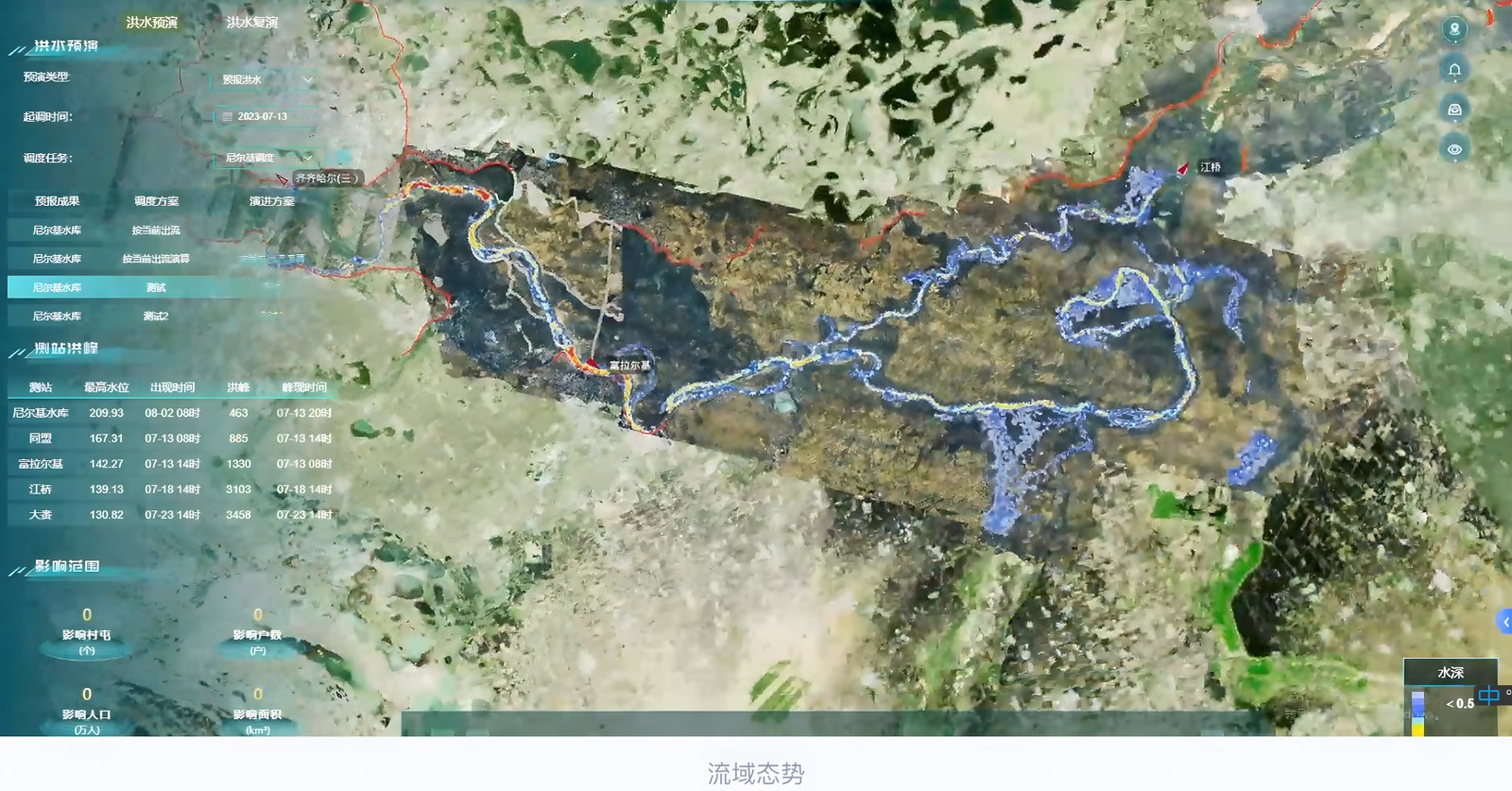 以某数字流域平台为载体,以时空数据为基础,以水利专业模型结果为根本,聚焦预演、预案关键环节,实现与物理流域的虚实交互,为防洪调度会商决策提供有效技术支撑。
