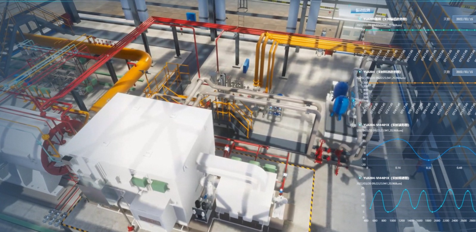 BIM与GIS数据相结合。结合实际情况建设压气站三维数字模型,确保数据真实有效,为站场各类信息化应用提供数字底座;在充分还原空间场景的同时,结合了压缩机振动与监测系统、空间库存管理等传统业务应用。提升了传统业务的协同与交互,降低了传统应用业务门槛。